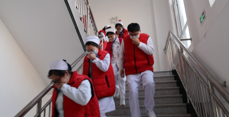 淄博世博高新医院院内迅速响起消防警报,各科室人员按照预定路线弯腰低姿、捂住口鼻,快速有序地向安全区域疏散。这是119消防宣传月期间,医院安全办公室精心组织的消防应急疏散演练现场,为全院人员的生命财产安